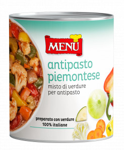 L’antipasto piemontese, detto anche “Cumposta”, è un piatto tipico caratterizzato da una grande varietà di verdura unita ad una salsa al pomodoro leggermente agrodolce. È un vero trionfo di gusto e colore, preparato con ortaggi freschi lavorati in stagione, tra cui cavolfiore, zucchine, carote, peperone, sedano e cipolla. Particolarmente indicato per buffet. Ottimo contorno accompagnato a salumi e formaggi, può essere arricchito con tonno e uovo sodo per un abbinamento tipico.
