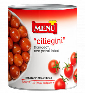 Pomodorini con buccia conservati in succo di pomodoro.Indicati per abbinamenti a primi e secondi piatti di carne o pesce, da ricettare a piacere.