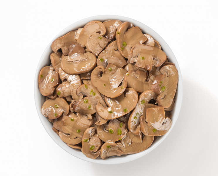 Funghi prataioli (Agaricus bisporus) selezionati, tagliati a fette e trifolati con olio e piante aromatiche. Ottimi per farcire pizze, bruschette e panini.