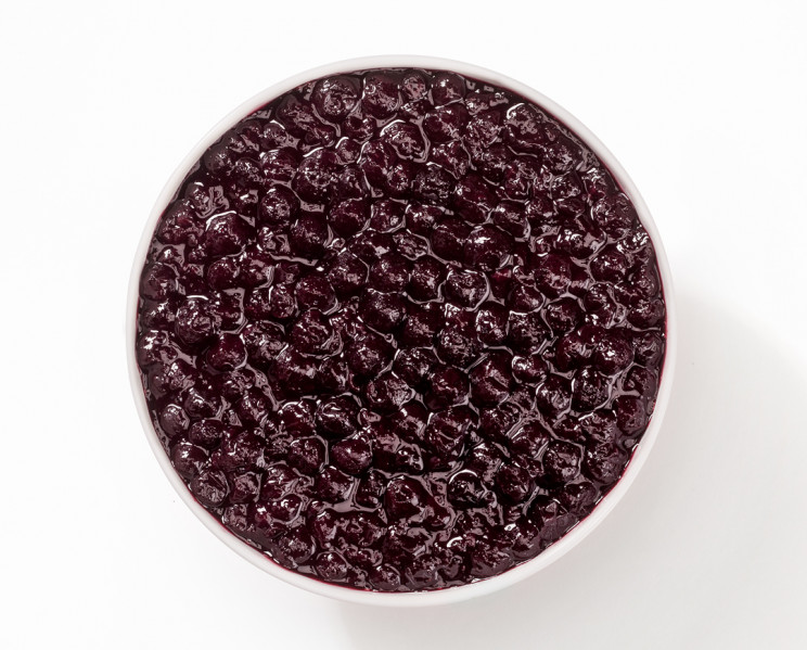 Mirtilli interi nel loro succo precedentemente addensato con zucchero, che non necessita di essere scolato. Ideali da usare come decorazione su dessert e gelati o da abbinare a panna montata servita in coppa. Ottima per farcire crostate e crêpes.