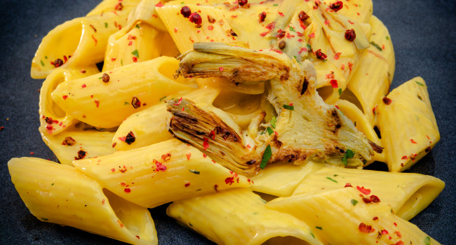 La Grancrema alla Carbonara è una base preparata pronta all’uso. Perfetta per mantecare primi piatti, questa crema può essere arricchita con guanciale per una carbonara tradizionale, con pesce per una versione di mare, con verdure per una variante vegetariana o con funghi per una versione montanara. La cremosità unica la rende versatile per altre preparazioni come la farcitura di pizze contemporanee, panini e bruschette.