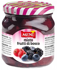 Mirtilli, ribes e more interi, altamente selezionati, con zucchero, succo di ribes. Perfetto per decorare semifreddi, dessert, torte e coppe gelato. Si consiglia di scolarli dal loro liquido.