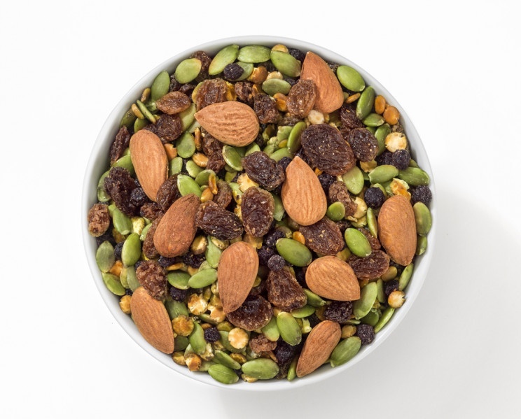Fantasia di fiocchi di legumi, semi di zucca, mandorle, uva sultanina e mirtilli.