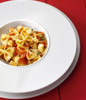 Sugo a base di pomodoro fresco condito con olio e cipolla ed aromatizzato con basilico fresco. Indicato come condimento per primi piatti.