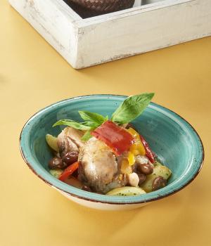 Quarto posteriore di pollo aromatizzato con Profumoro, dorato al forno, confezionato e sottoposto ad una pastorizzazione in busta trasparente sottovuoto. Prodotto dal sapore fresco e saporito, visivamente appare con pelle ben dorata. Preparazione: in padella, in microonde, in forno o in acqua con busta