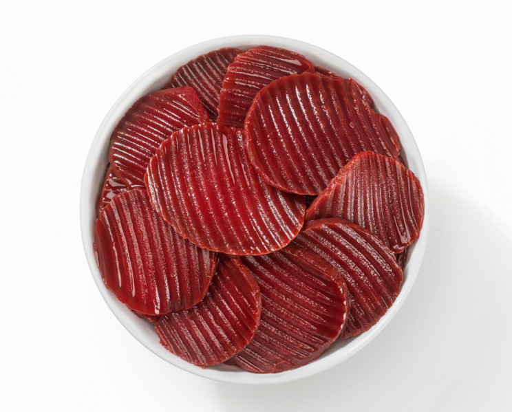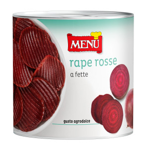 Fettine di barbabietole rosse conservate in acqua, aceto e zucchero. Ottime come contorno e per condire insalate.