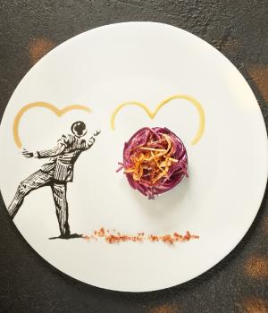Salsa ricca di colore dal gusto fresco e leggermente acidulo. Viene preparata utilizzando cavolo cappuccio viola 100% italiano e aceto di mele. La presenza di note acidule, amarognole e dolci, dona equilibrio e rende irresistibile questa salsa. Grazie al suo particolare colore brillante, questa salsa è ideale per farcire panini e pizze gourmet fuori cottura, ma anche in accompagnamento a piatti a base di carne e verdure