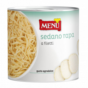 Sedano rapa tagliato alla julienne, conservato in acqua, sale e aceto.Ideale come contorno e per condire insalate.