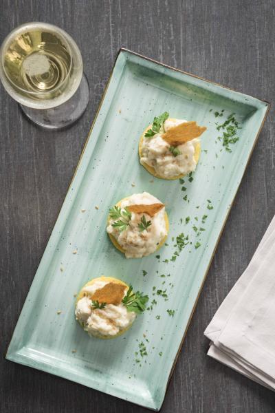 BACCALÀ MANTECATO SU CROSTINI DI POLENTA