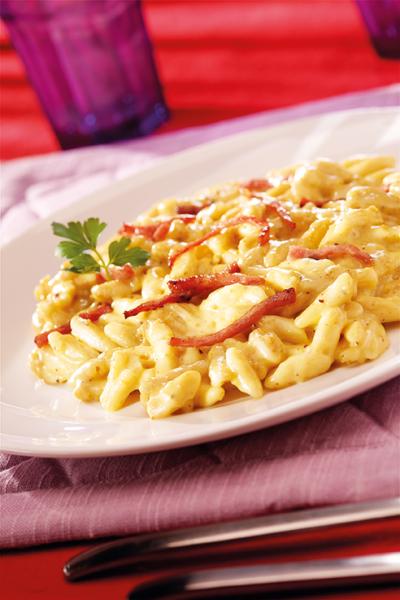 In abbondante acqua salata cuocere al dente i cavatelli. Nel frattempo in una casseruola diluire sul fuoco la Crema ai formaggi con un poco di latte; aggiungere anche la crescenza e scioglierla in modo da ottenere un composto omogeneo. Aggiungere anche il Pesto ai pistacchi e amalgamare con cura. In una padella scaldare un filo d'Olio extravergine di oliva e rosolarvi per qualche minuto la mortadella precedentemente tagliata a julienne. Scolare i cavatelli e saltarli nel condimentoai Formaggi Pistacchio; completare con le la julienne di mortadella e servire la pasta ben calda.