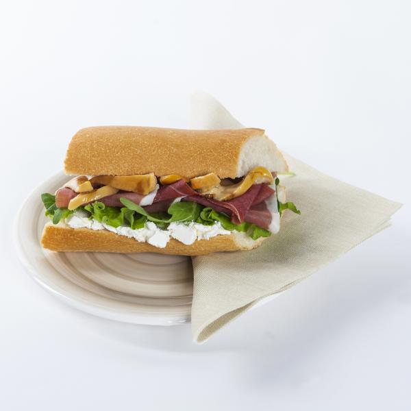 Spalmare il formaggio su un lato del pane, quindi disporre l'insalata e la rucola, il prosciutto crudo ed infine i Funghi Porcini.