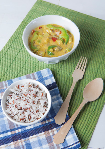Cuocere il mix tre risi in abbondante acqua salata bollente per 10 minuti circa. In una padella scottare il filetto precedentemente tagliato a dadini, con un filo d’olio. Una volta rosolato aggiungere la salsa Arlecchino ai peperoni, la panna, il curry, le fette di banana e di ananas precedentemente tagliate a pezzetti. Aggiustare di sale e pepe e fare addensare la salsa per circa 10 minuti, fino ad ottenere una consistenza cremosa. Servire la preparazione ottenuta in una ciotola, accompagnandola al mix tre risi, in una ciotola a parte.