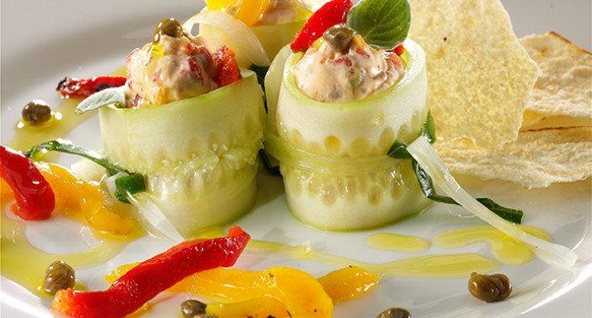 INVOLTINI DI CETRIOLO CON ROBIOLINA AROMATIZZATA E CAPPERINI