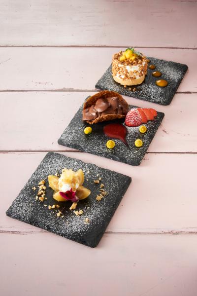 CHEESE CAKE CON COULIS DI MANGO E SABLAGE DI NOCCIOLA